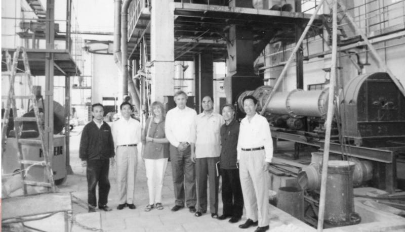 1989年,合肥院首臺自主開發的HRM1250原料立式磨成功投運,各項技術指標達到或超過設計要求,填補國內空白。該成果于1993年通過建材行業部級鑒定,達到國際先進水平,隨后榮獲“國家級新產品”、“國家優秀節能科技成果”和國家建筑材料工業局建材行業部級科技進步二等獎等一系列榮譽獎勵。圖為技術人員與院領導在該臺立式磨前合影